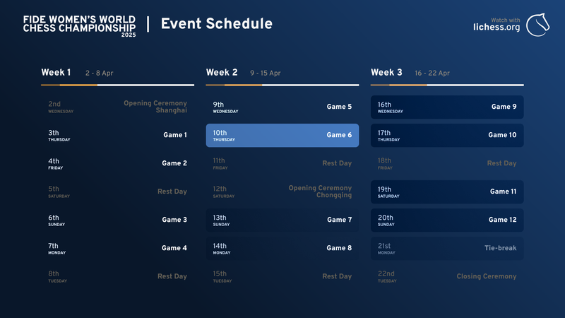 Lichess has also run player profiles on GM Ju Wenjun and GM Tan Zhongyi, and published a Match Preview ahead of the match.