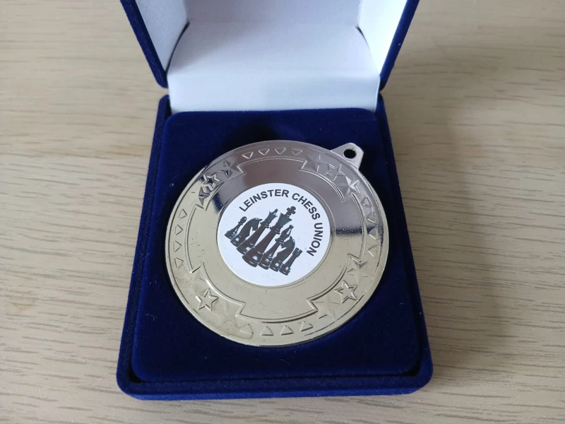 All that was left was to wait for the other games to finish. We won on board 1, lost on board 3 and had a winning position on board 5 but the other player forced a repetition. So we all crowded around board 4 to see what the final score would be. All we needed was a draw but unfortunately my teammate was down 2 pawns in an endgame with little chance of victory. He fought on as long as possible but eventually got forked and had to resign. The final score was a draw with both sides getting 2.5 points. Under the rules, this meant that Drogheda won the league and we came 2nd.